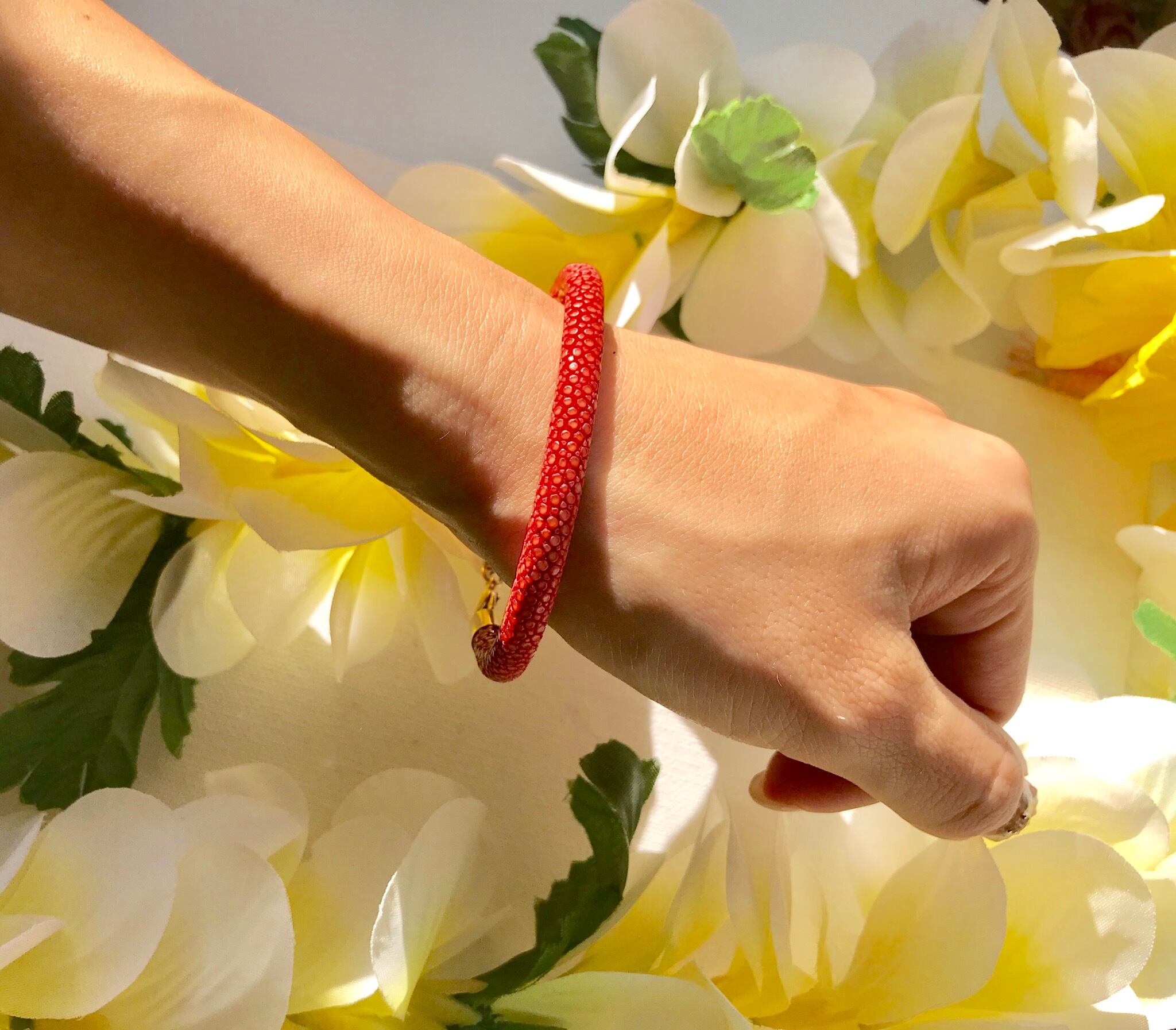 海の宝石と呼ばれるエイ革を使用したブレスレットです★