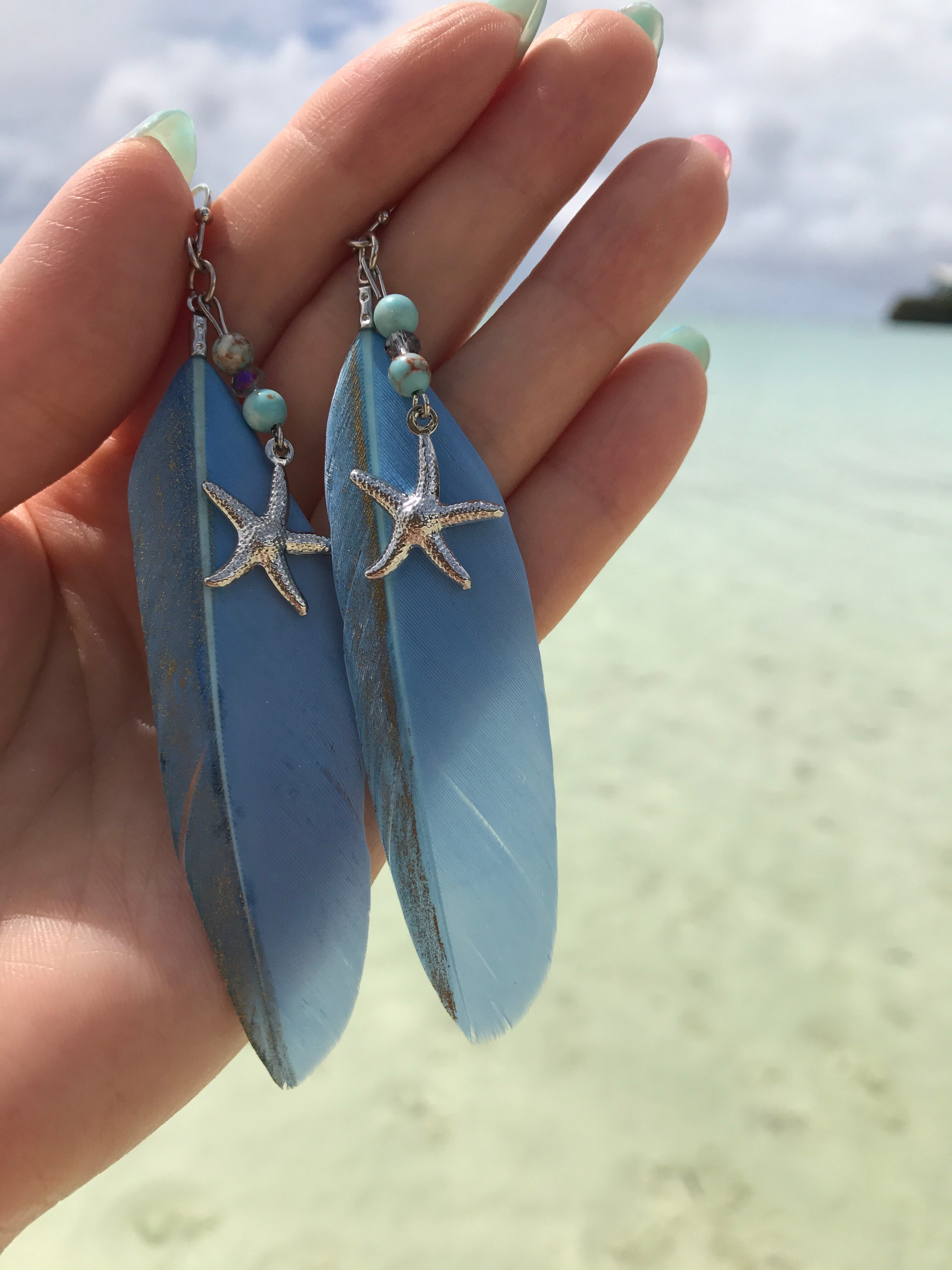風でフェザーとヒトデが揺れる、大人可愛いピアスが出来ました★